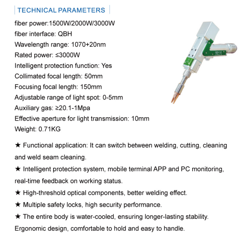 The 3-in-1 handheld welding machine is a portable laser welding device that integrates multiple welding functions. Its core advantage lies in integrating functions such as welding, cleaning, and cutting, which traditionally require multiple devices to complete. This integration meets diverse operational needs.