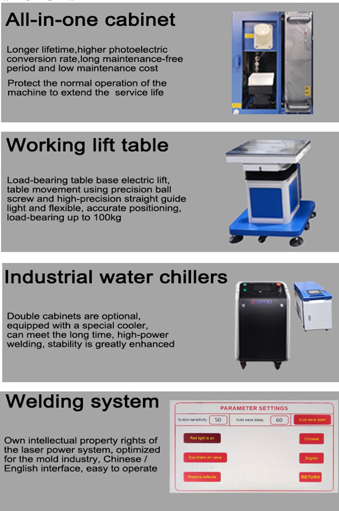 Mold laser welding machine features.